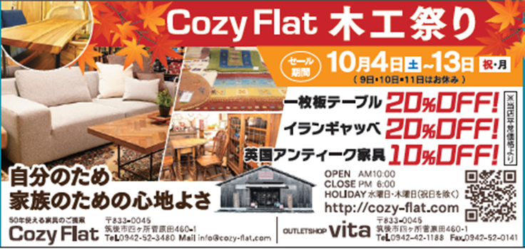 【Sale!!】10/4(土)~13(月・祝)CozyFlat 木工祭り開催します