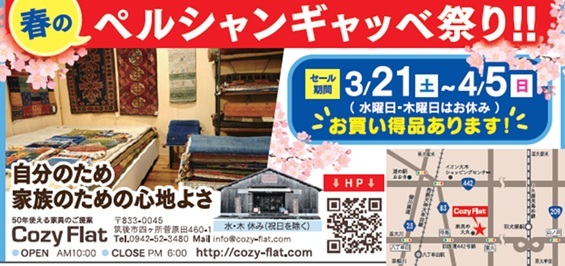 【Sale!!】3/21(土)~4/5(日) “春のペルシャンギャッベ祭り”開催します!